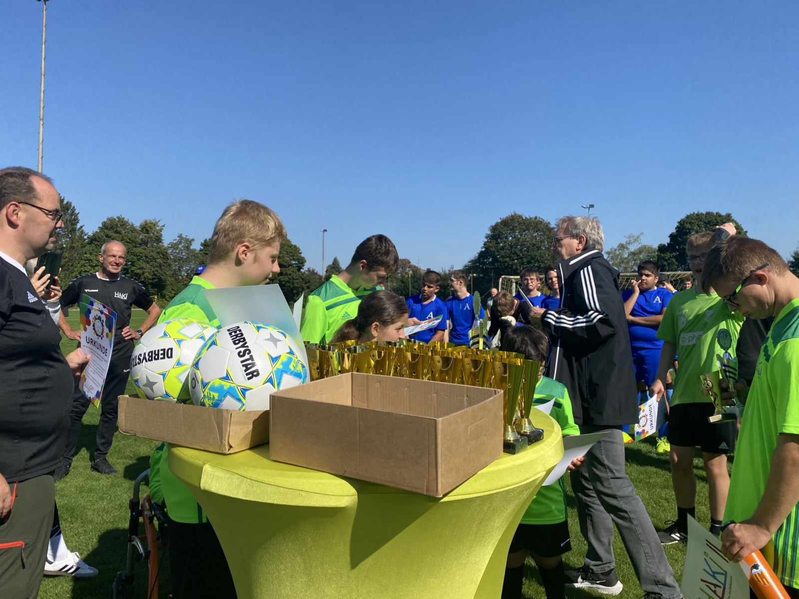 Für eine besondere Freude unter den Spieler*innen, Trainer*innen, Schiedsrichtern und Eltern sorgte am Ende des letzten Turnierspieltages die Siegerehrung. Alle Mannschaften haben vom NFV-Kreis Region Hannover einen Mannschaftspokal und einen Fußball geschenkt bekommen. Außerdem erhielt jedes Kind eine Urkunde vom NFV und einen Mini-Pokal für das eigene Kinderzimmer von uns HaKis!